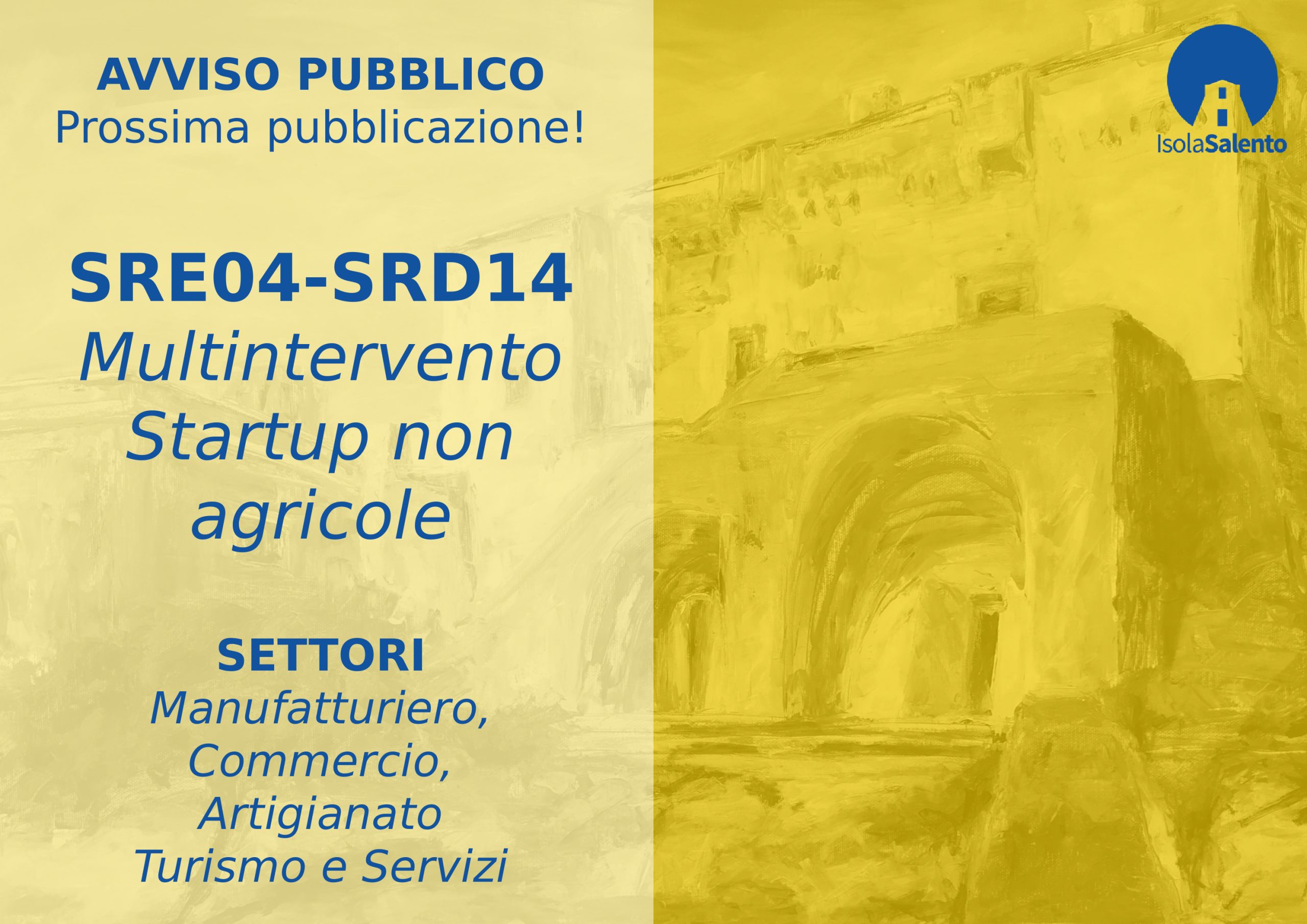 PROSSIMA PUBBLICAZIONE !!! – Bozza di Bando Multintervento Azione A.3 SRD14 “Investimenti produttivi non agricoli nel Salento di Mezzo” ed Azione A.4 SRE04 “Start up non agricole”